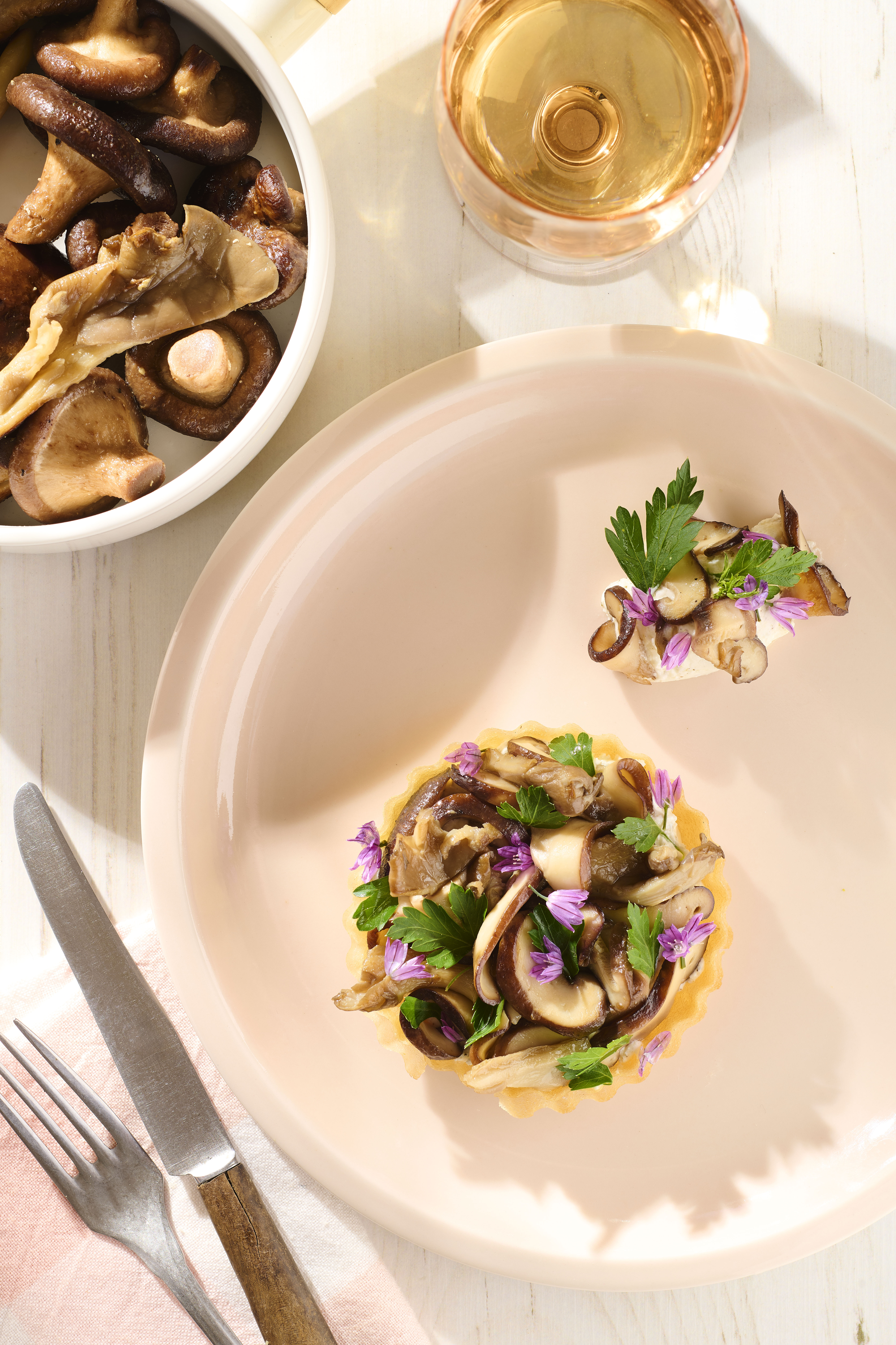 Tartelette de champignons, persil et fromage de brebis - Photo Image et associés