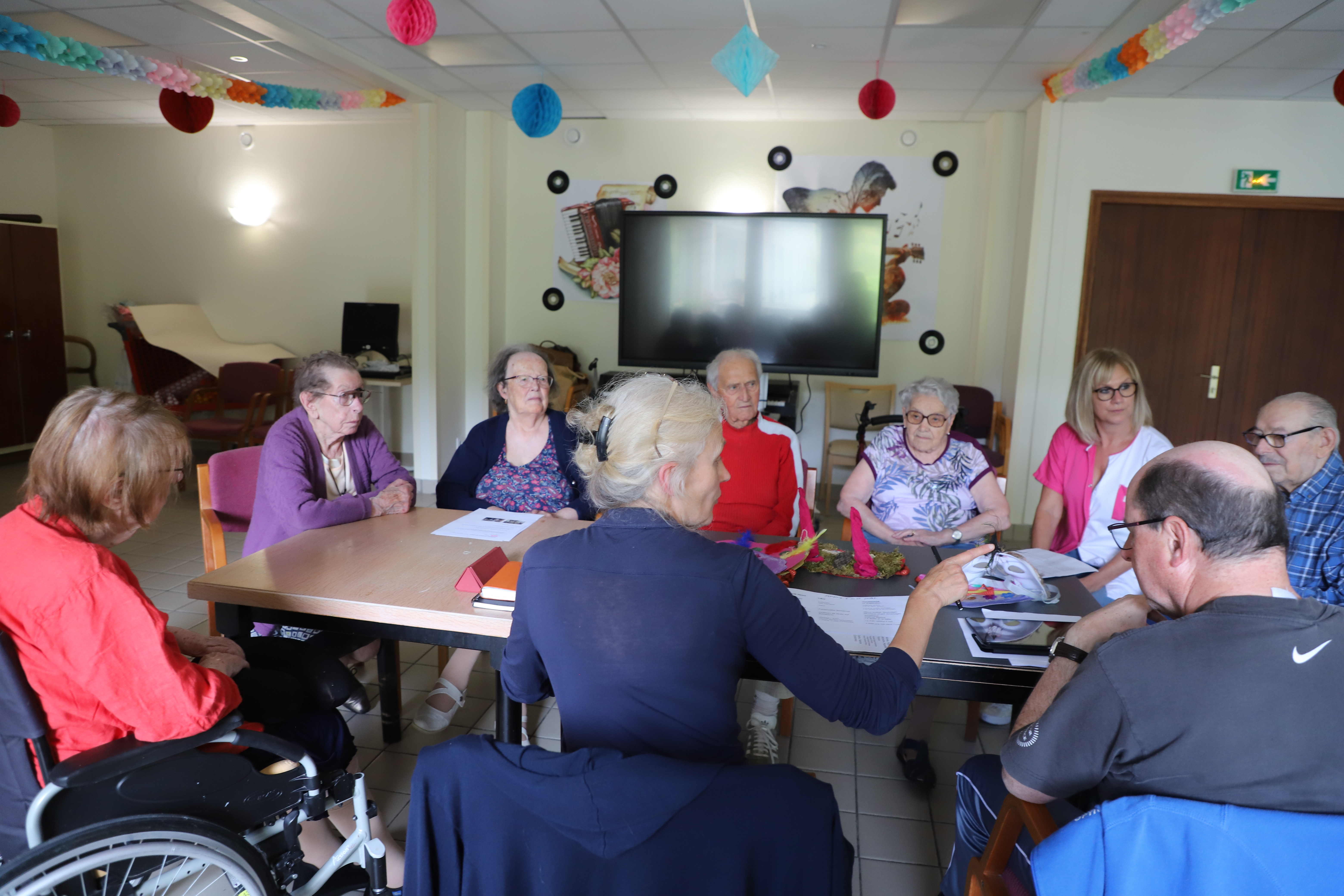 Parmi eux, Roger qui endossera le rôle qui incombait autrefois à Robert HOSSEIN. Tandis qu’à l’autre bout de la table, Yvette et Martial trépignent d’impatience à l’idée d’incarner leurs personnages. Des éclats de rire rythment la séance, sous la direction bienveillante de Véronique, qui propose sans jamais imposer et s’adapte aux états de santé de chacun. Pour documenter les coulisses du projet, un résident est d’ailleurs chargé de tout filmer : les éclats de rires, les tergiversations sur les scènes à couper ou les choix des costumes.